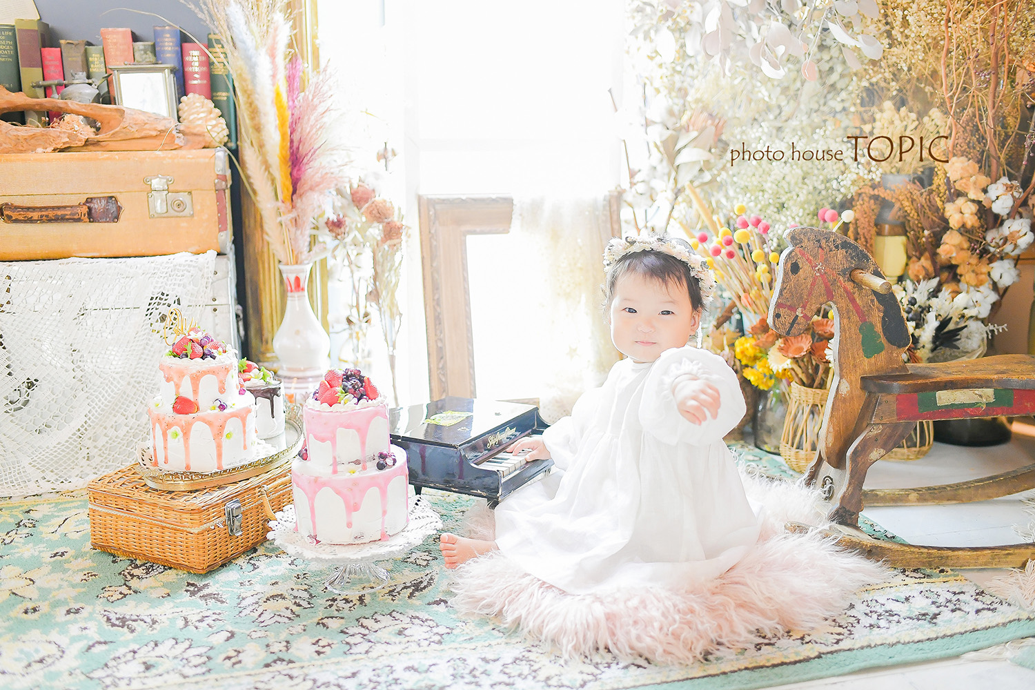 1才バースデーのバースデーフォトの記念写真のスタジオ撮影にお越しいただきました*