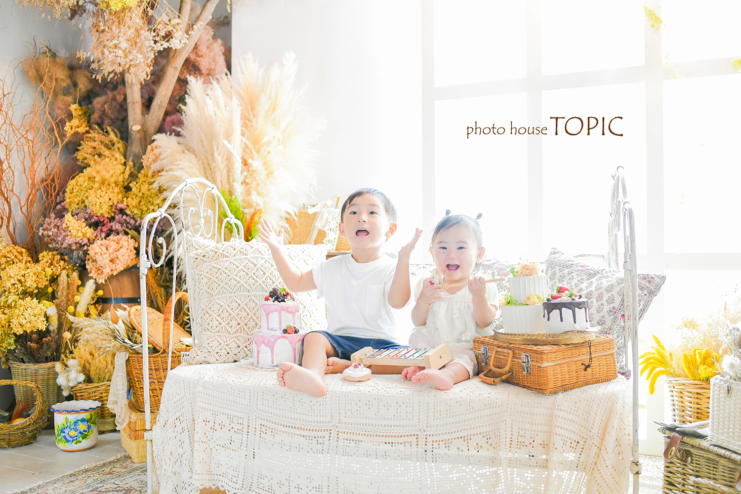 兄妹揃ってにっこり笑顔、仲良しな雰囲気がとても微笑ましい1枚になりました!