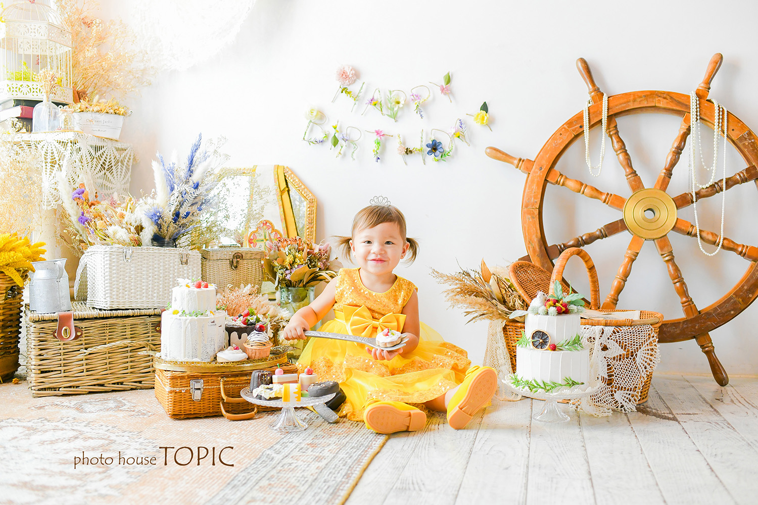 黄色いドレスがとっても似合う、2歳のバースデーフォト♪