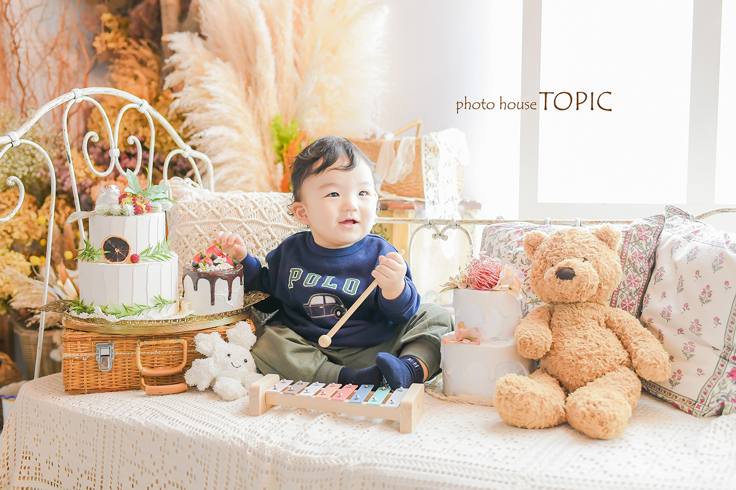 1歳バースデーフォトの記念写真にスタジオにお越しいただきました✳︎