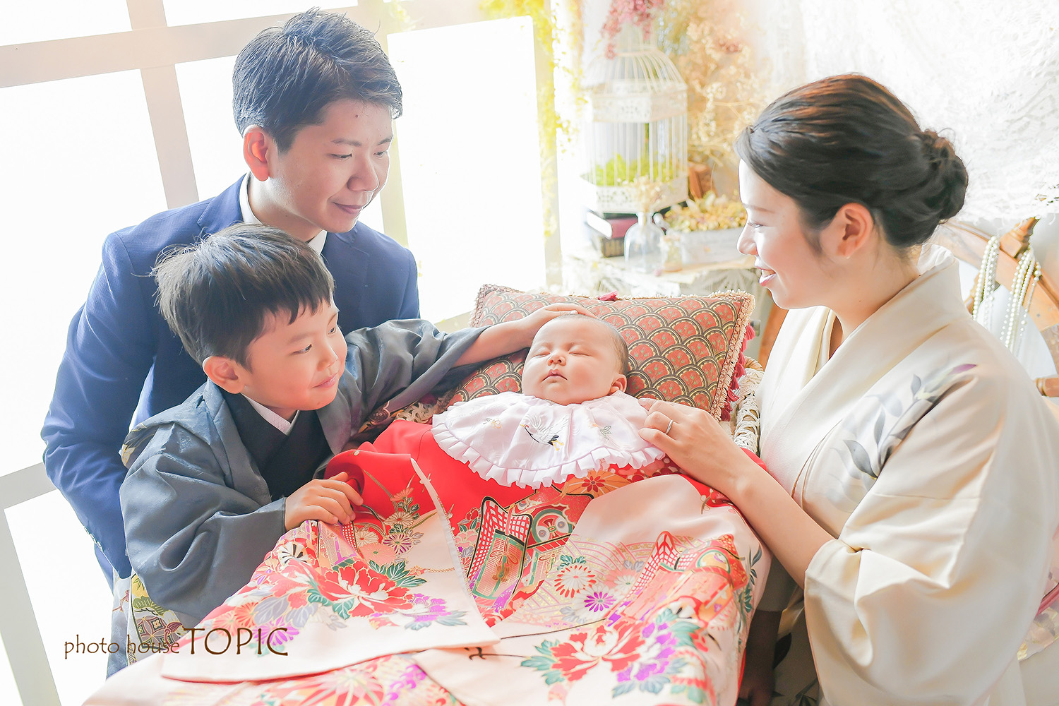 5才七五三前撮り&お宮参りの家族写真の記念写真にスタジオ撮影にお越しいただきました*