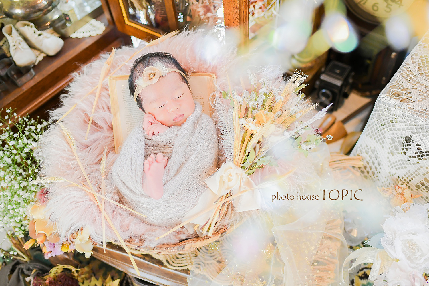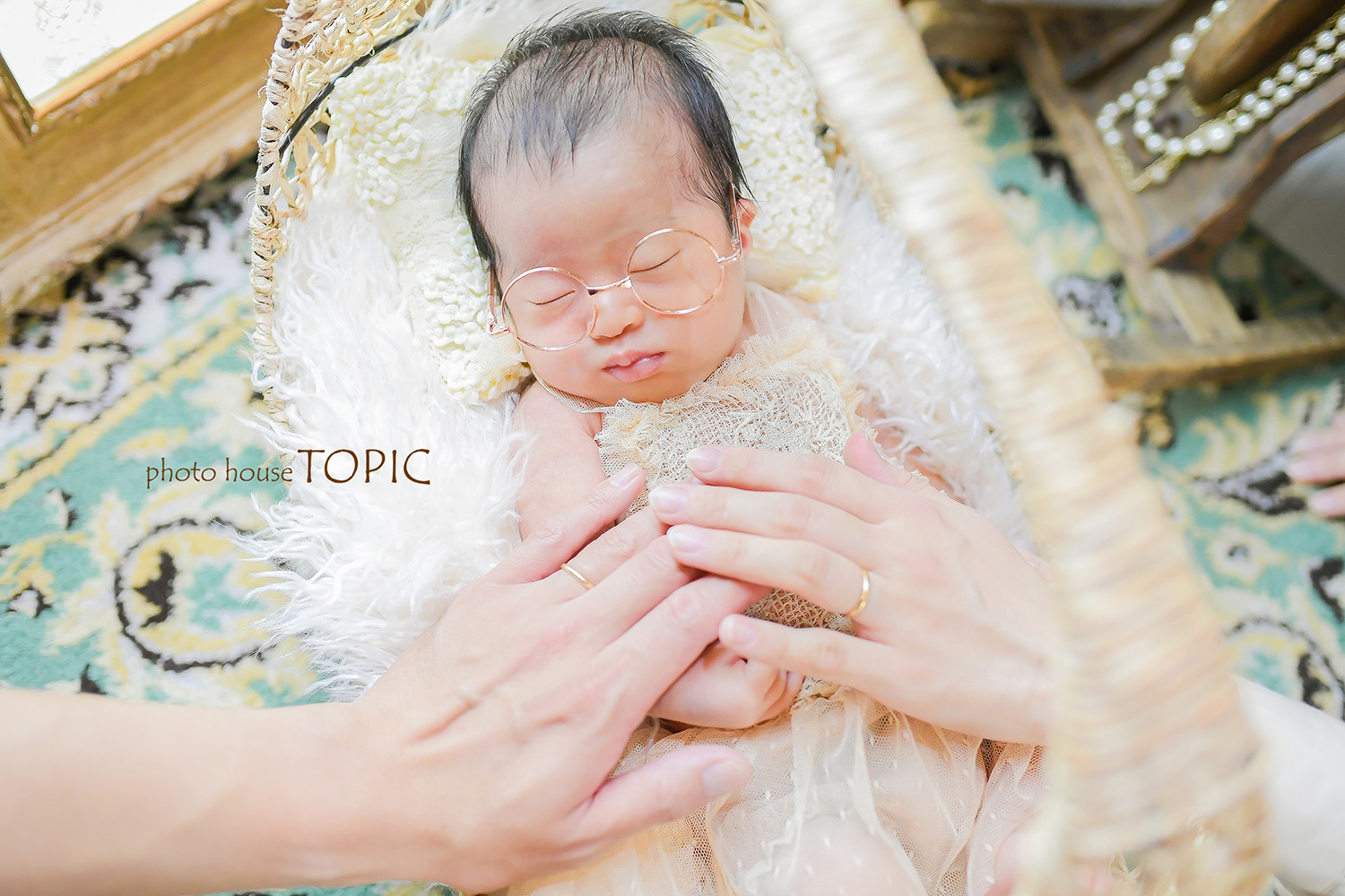 新生児のニューボーンフォトの記念写真の撮影にスタジオにお越しいただきました*