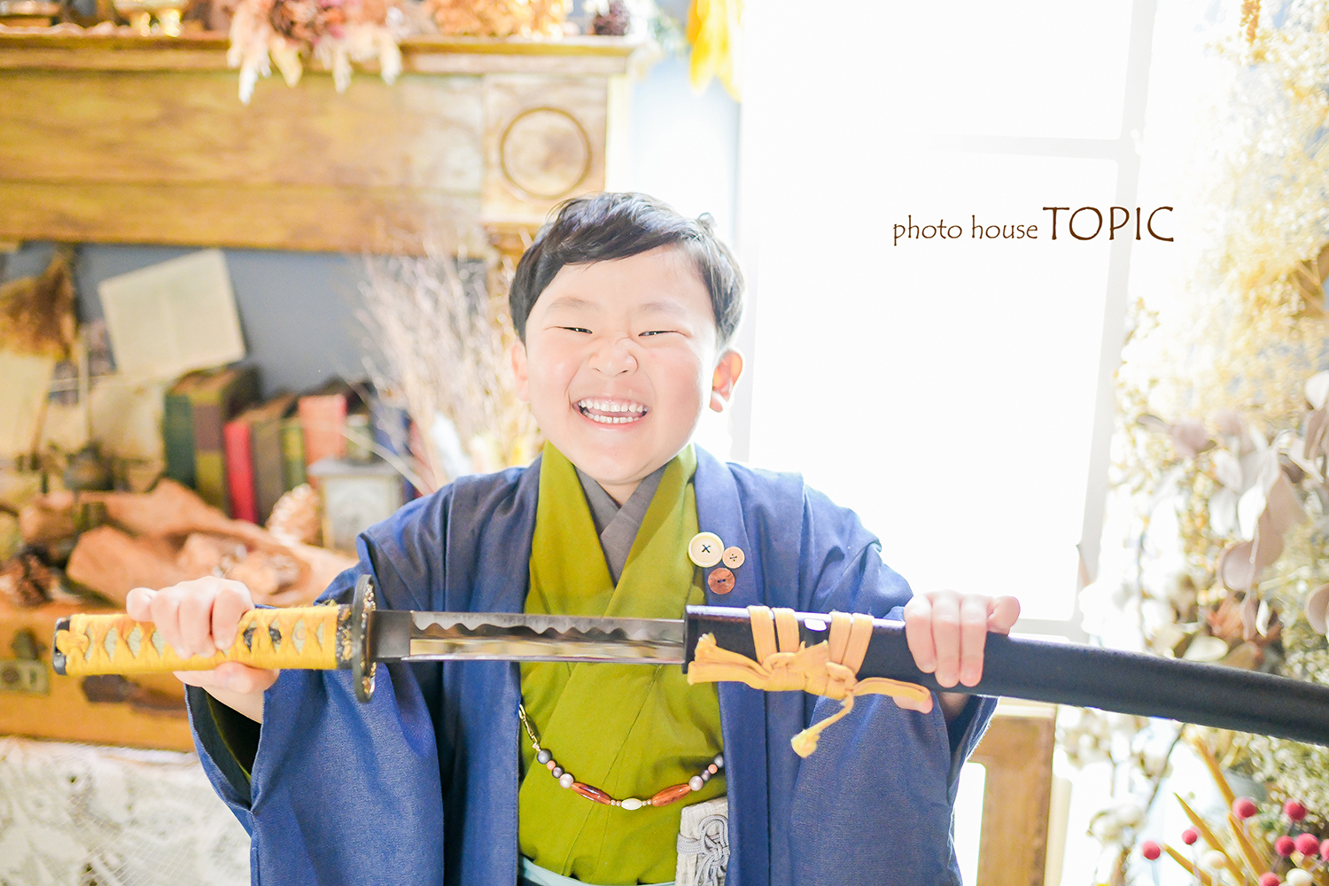 5才男の子の七五三前撮り撮影にスタジオにお越しいただきました☆