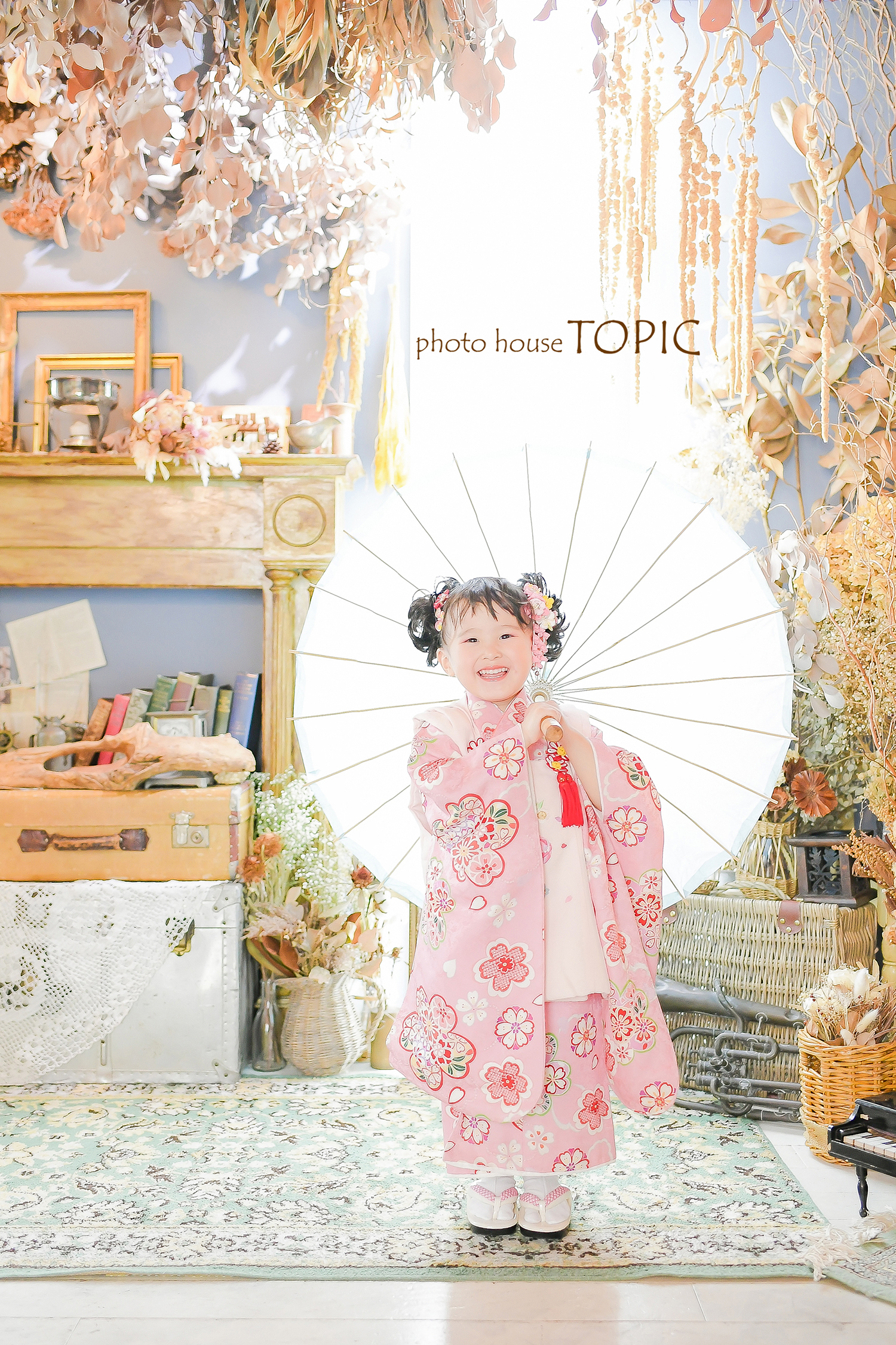 3才女の子の七五三前撮り撮影にスタジオにお越しいただきました☆