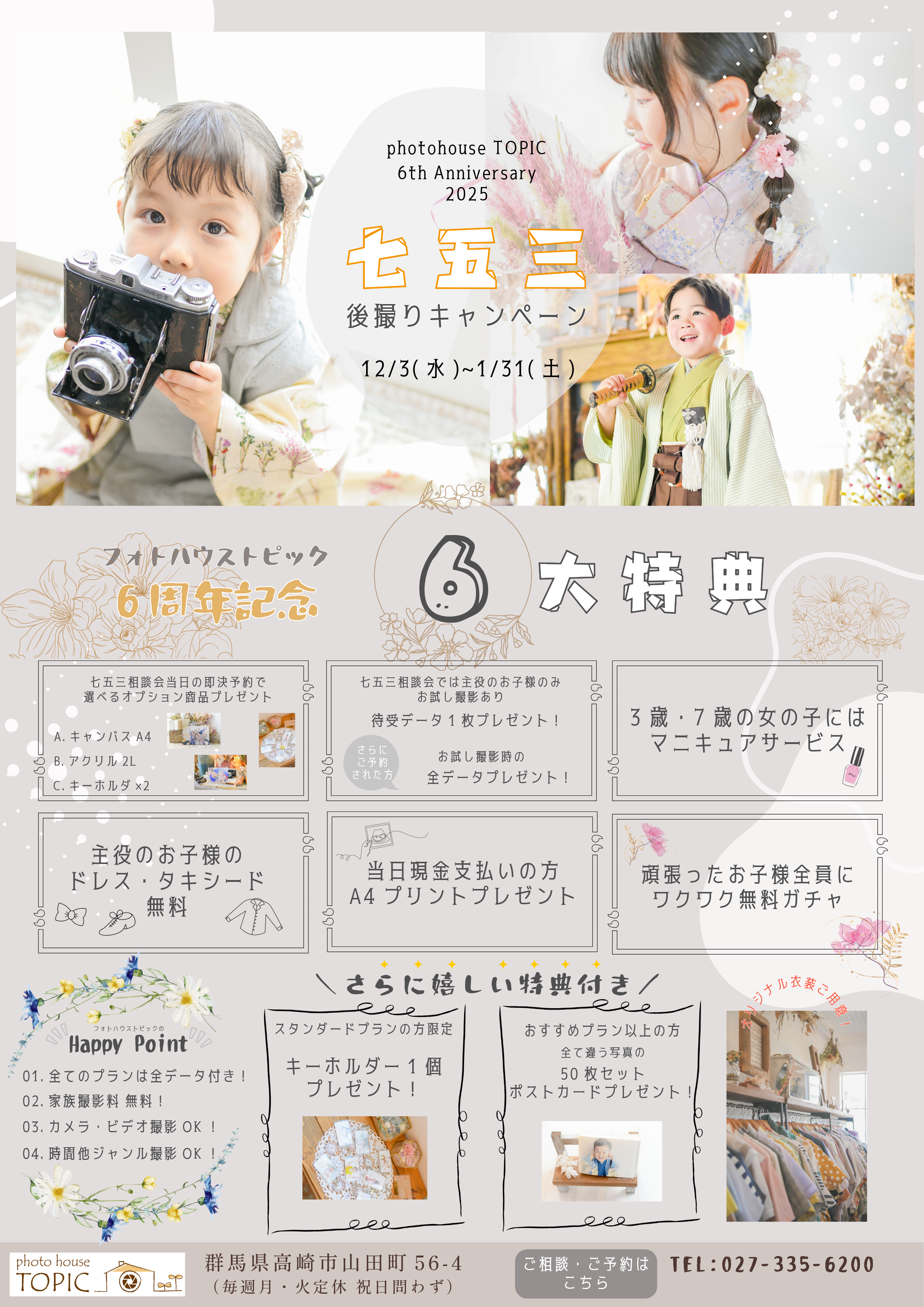 【後撮りキャンペーン】&【平日限定お得な七五三パック】1/31までの撮影受付開始!^^12月&1月七五三相談会応募フォームはこちら!