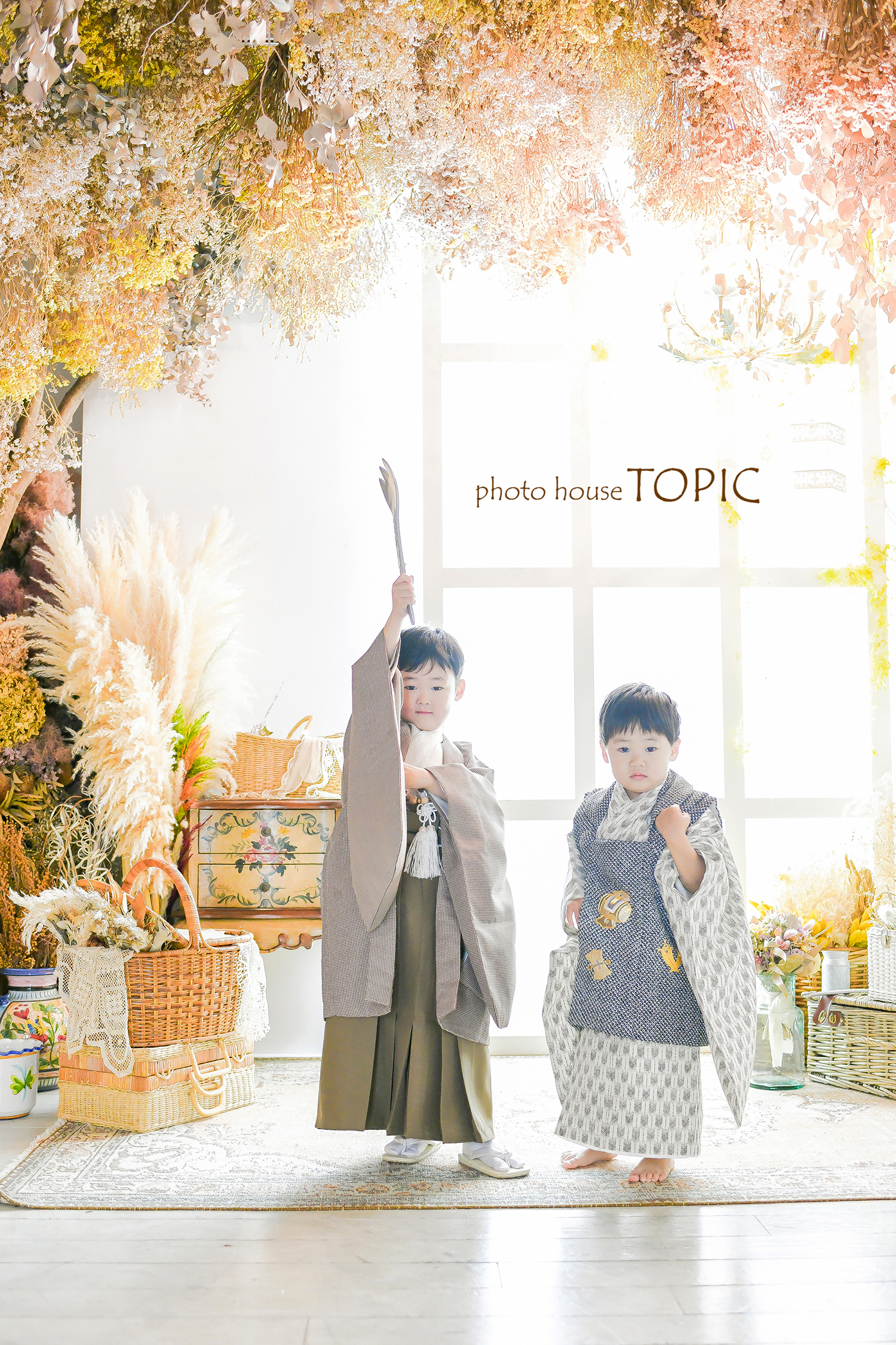 3才男の子と5才男の子の七五三前撮り撮影にスタジオにお越しいただきました☆