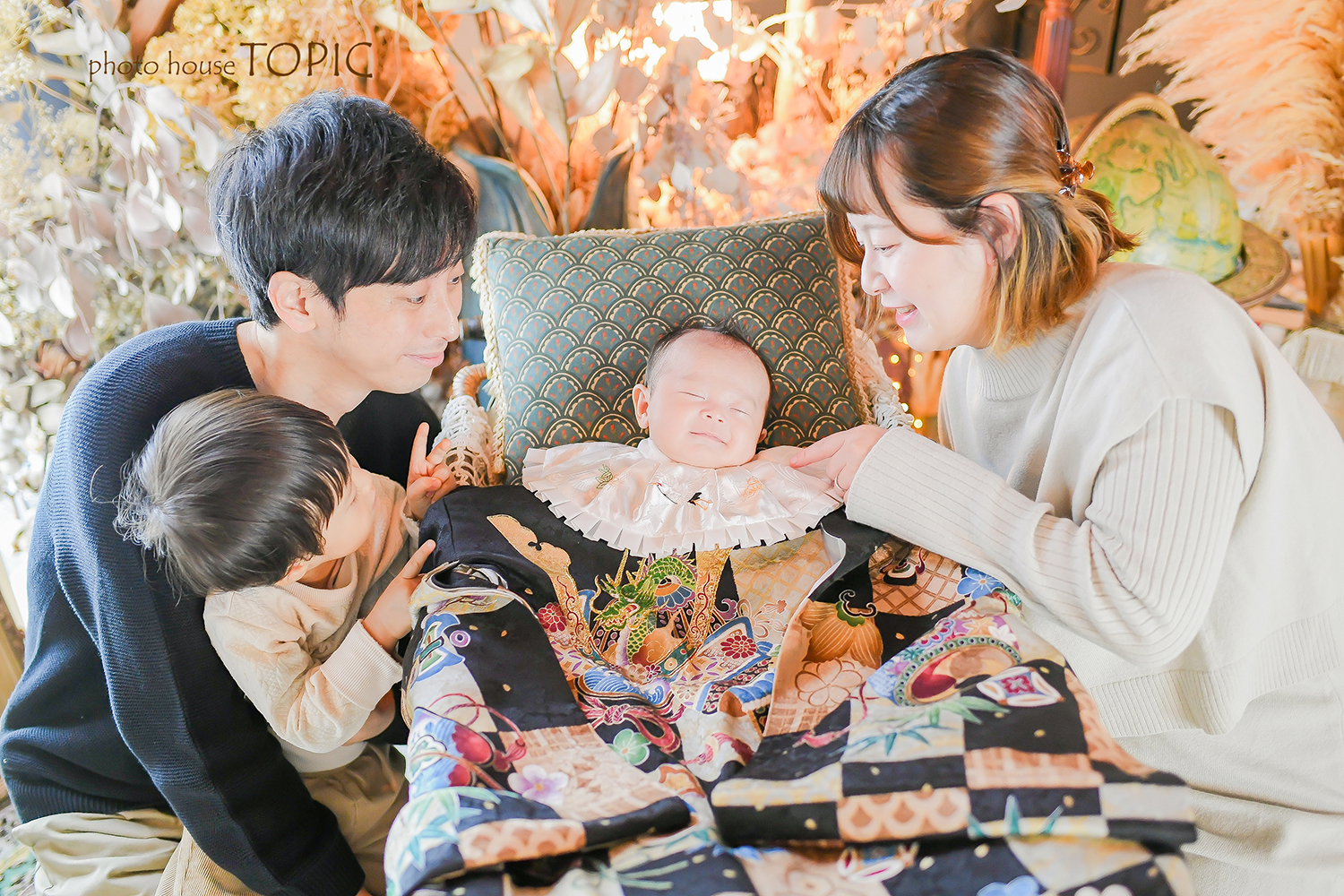 お宮参りの家族写真の記念写真にスタジオ撮影にお越しいただきました☆