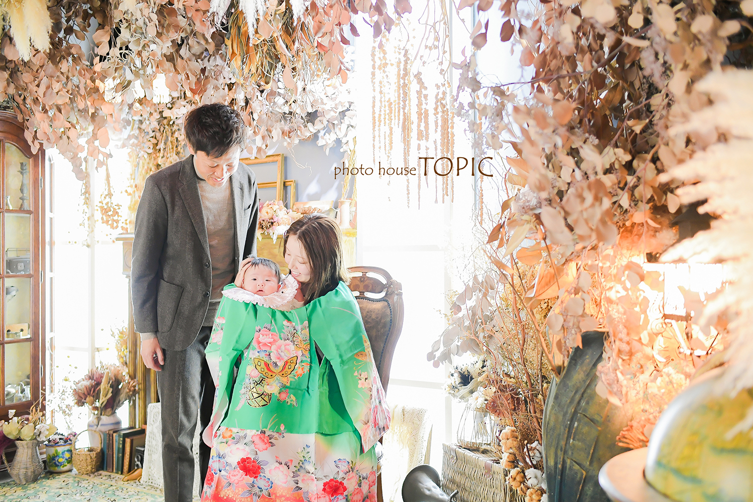 お宮参りの家族写真の記念写真にスタジオ撮影にお越しいただきました☆