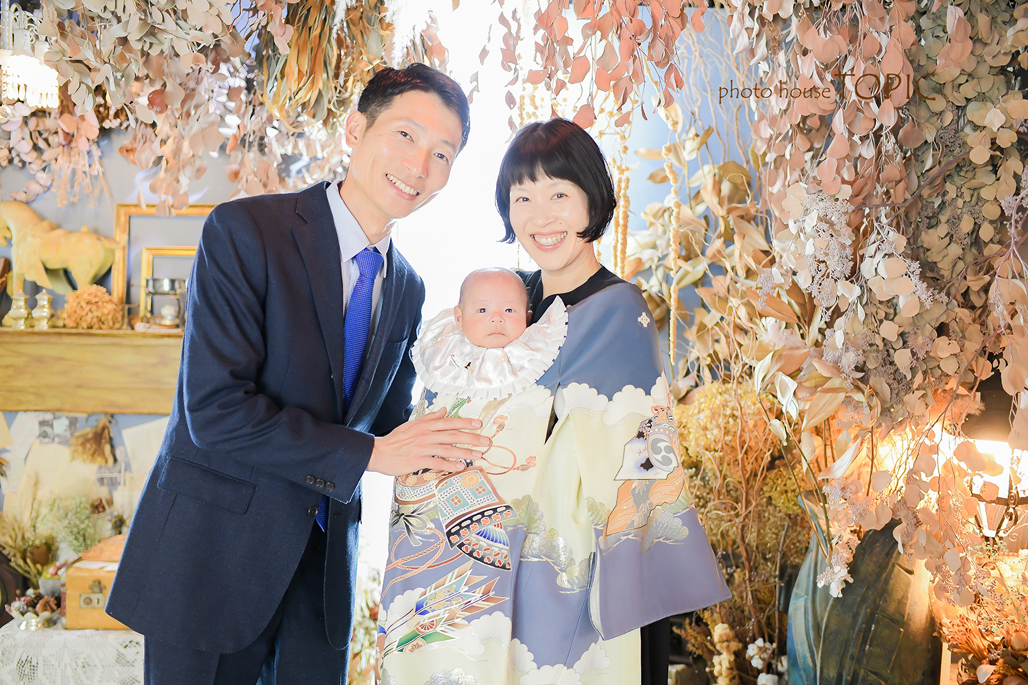 お宮参りの家族写真の記念写真にスタジオ撮影にお越しいただきました☆